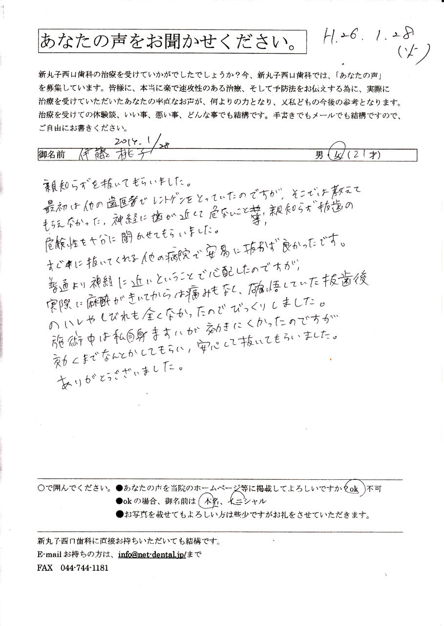 でもお断りして、レントゲンをとり歯茎の炎症状態を確認して抜歯予約を取ってもらい抜歯いたしました。