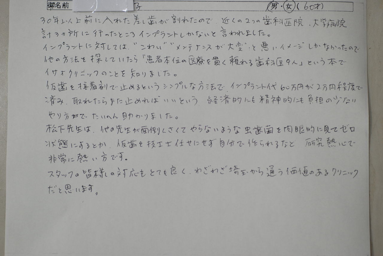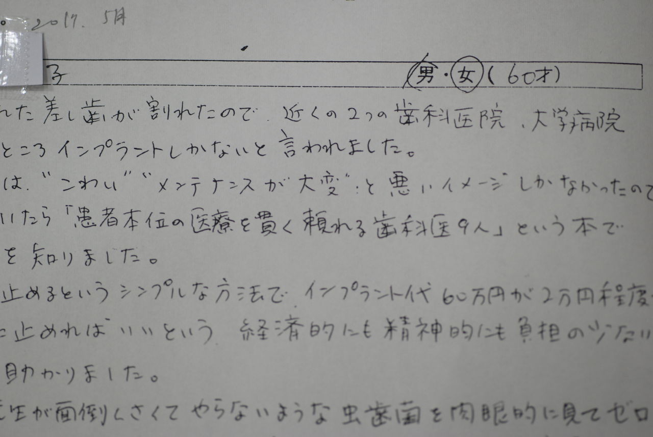 ずっと診療を受けていた老年の女性歯科医師から数年前に作成したもらった義歯です。